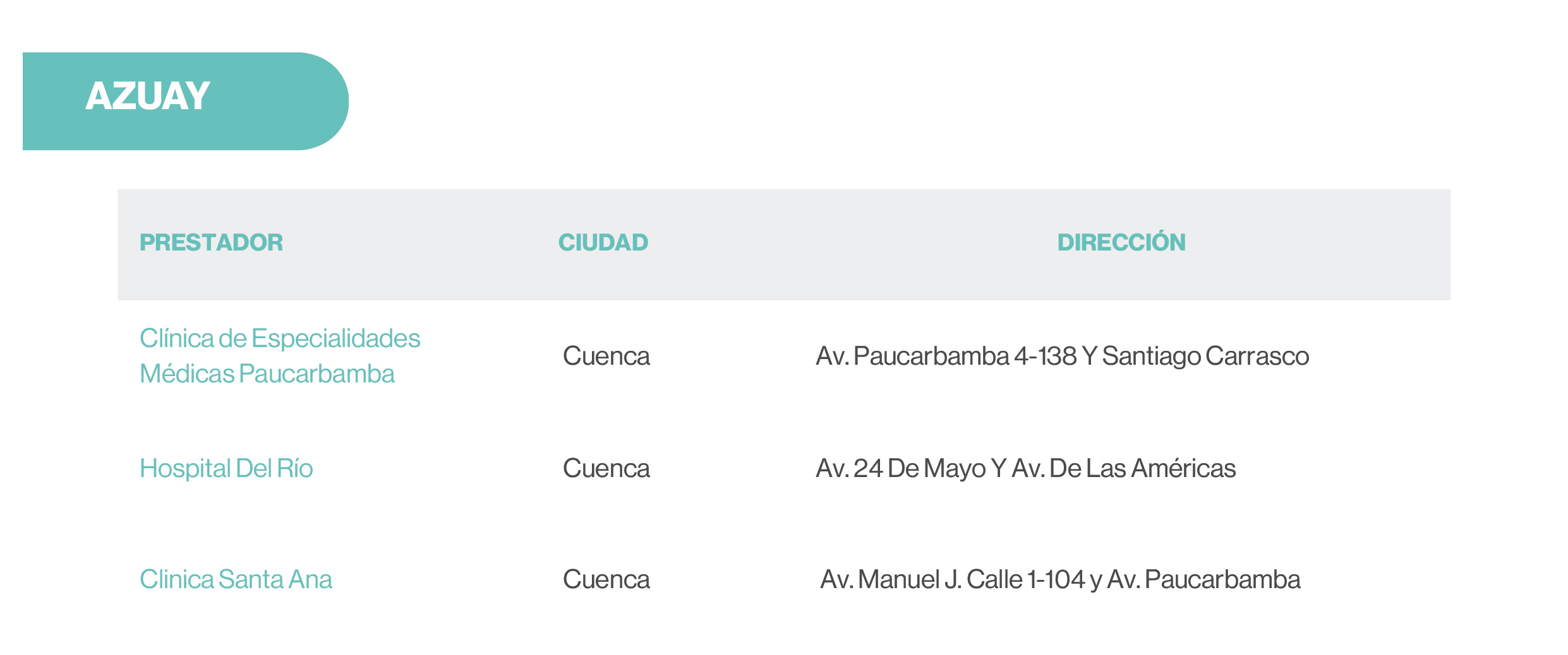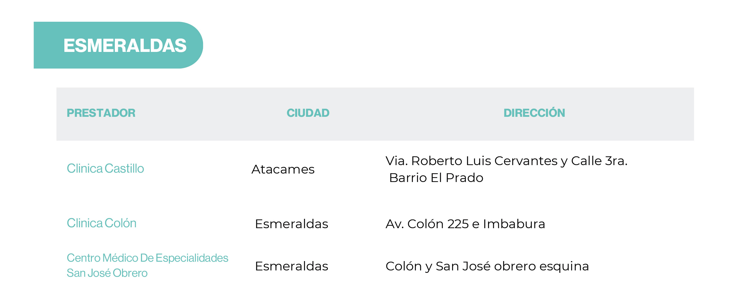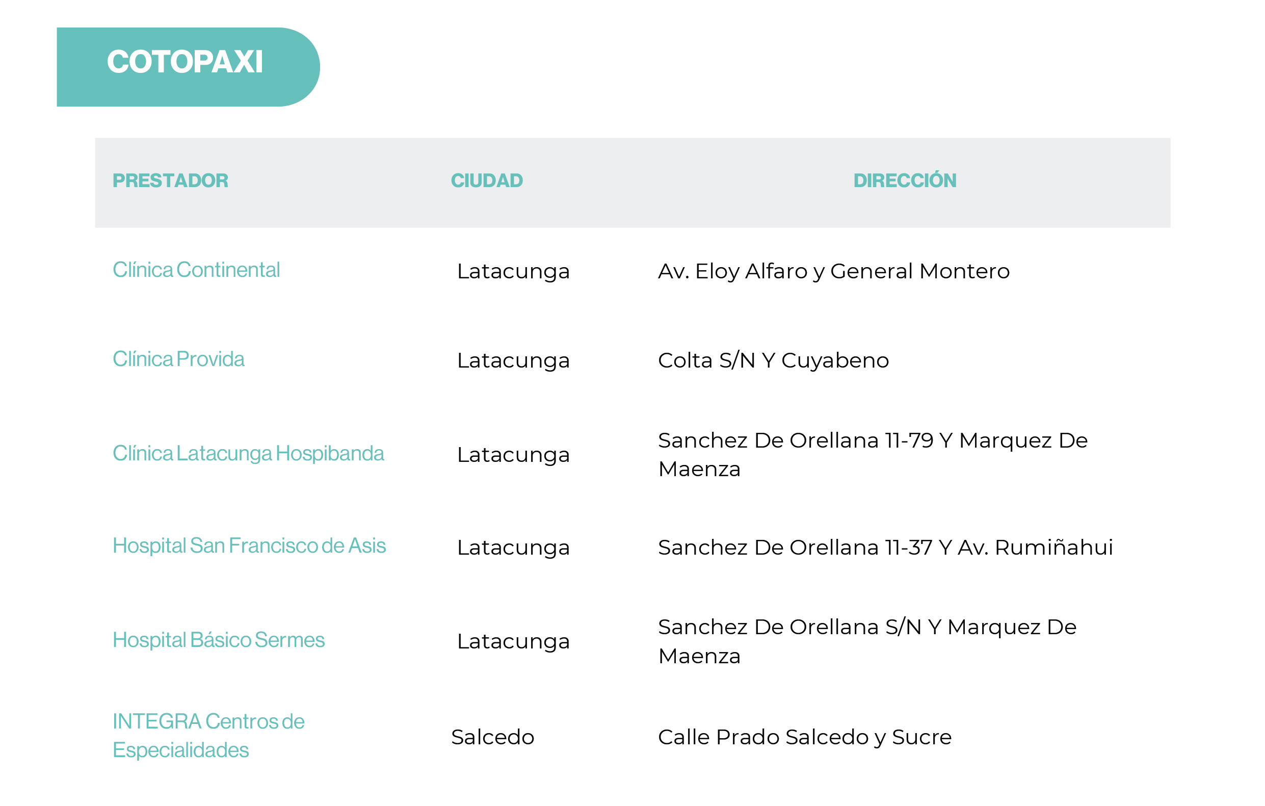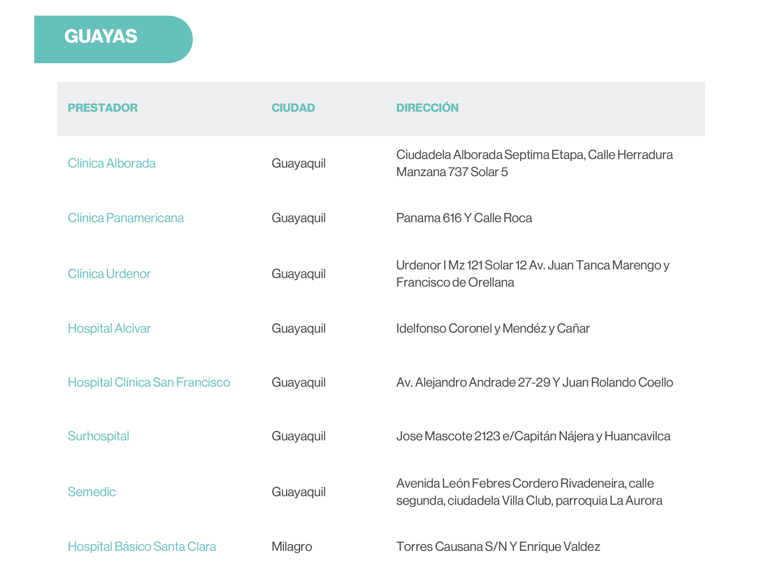 | Preexistencias | Hasta límite contratado | 20 SBU | 20 SBU | 20 SBU |