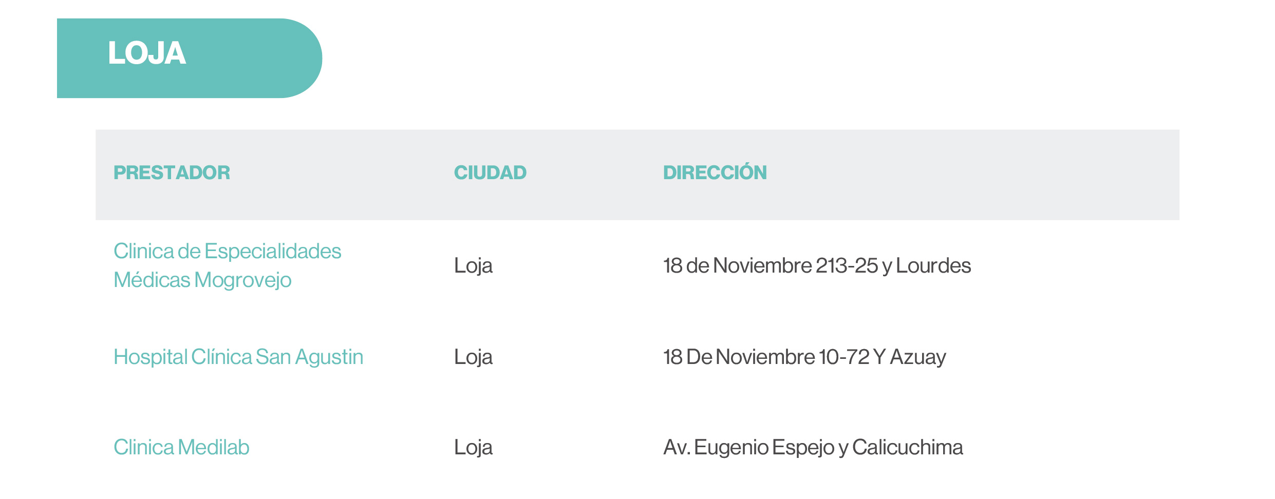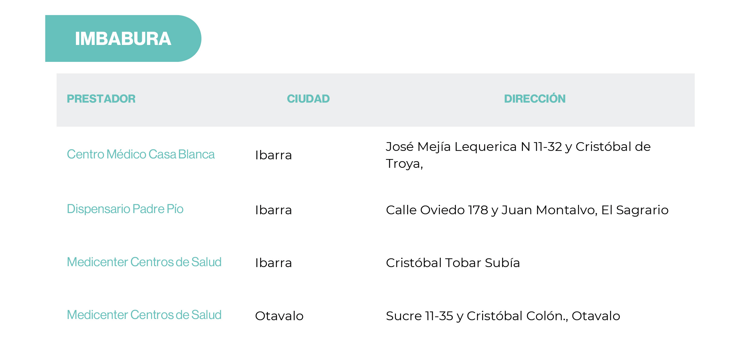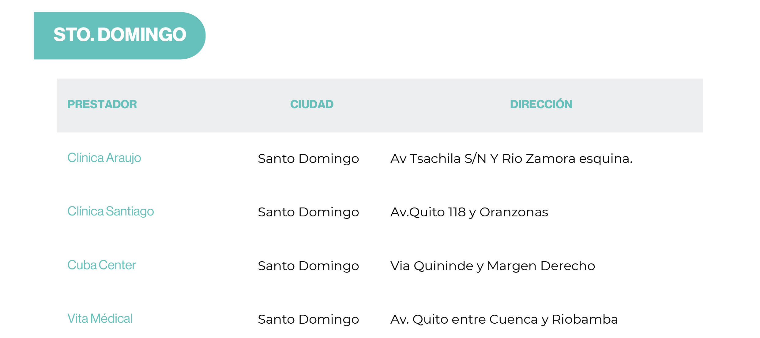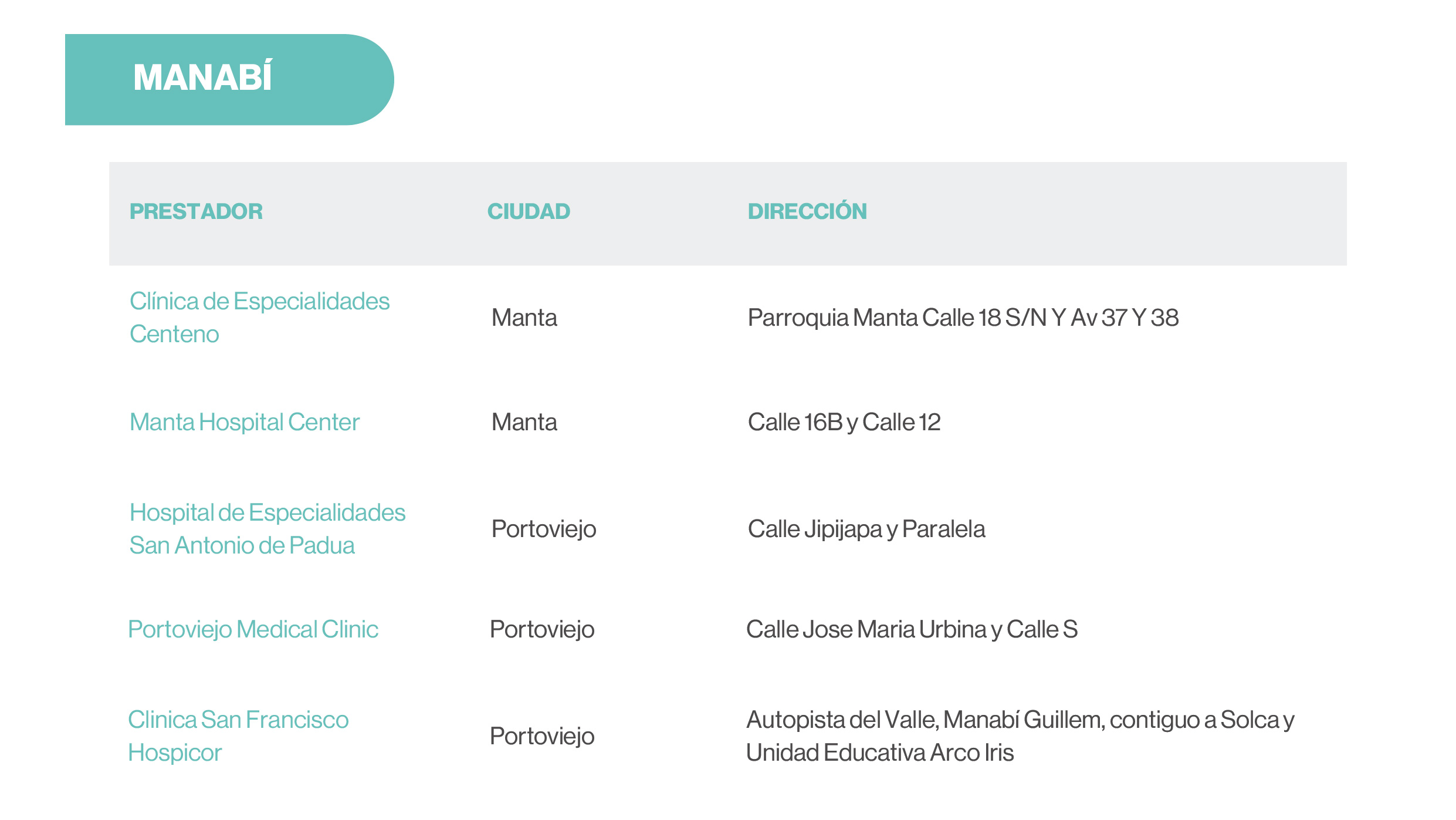 | Preexistencias | Hasta límite contratado | 20 SBU | 20 SBU | 20 SBU |
